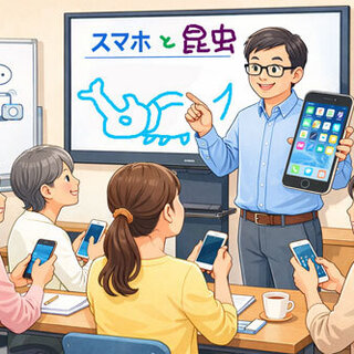 休憩時間には、コーヒーを飲みながらおしゃべりもはずみ、スマホ談義からいつのまにか昆虫講座へ。サロンの温かい時間になりました。